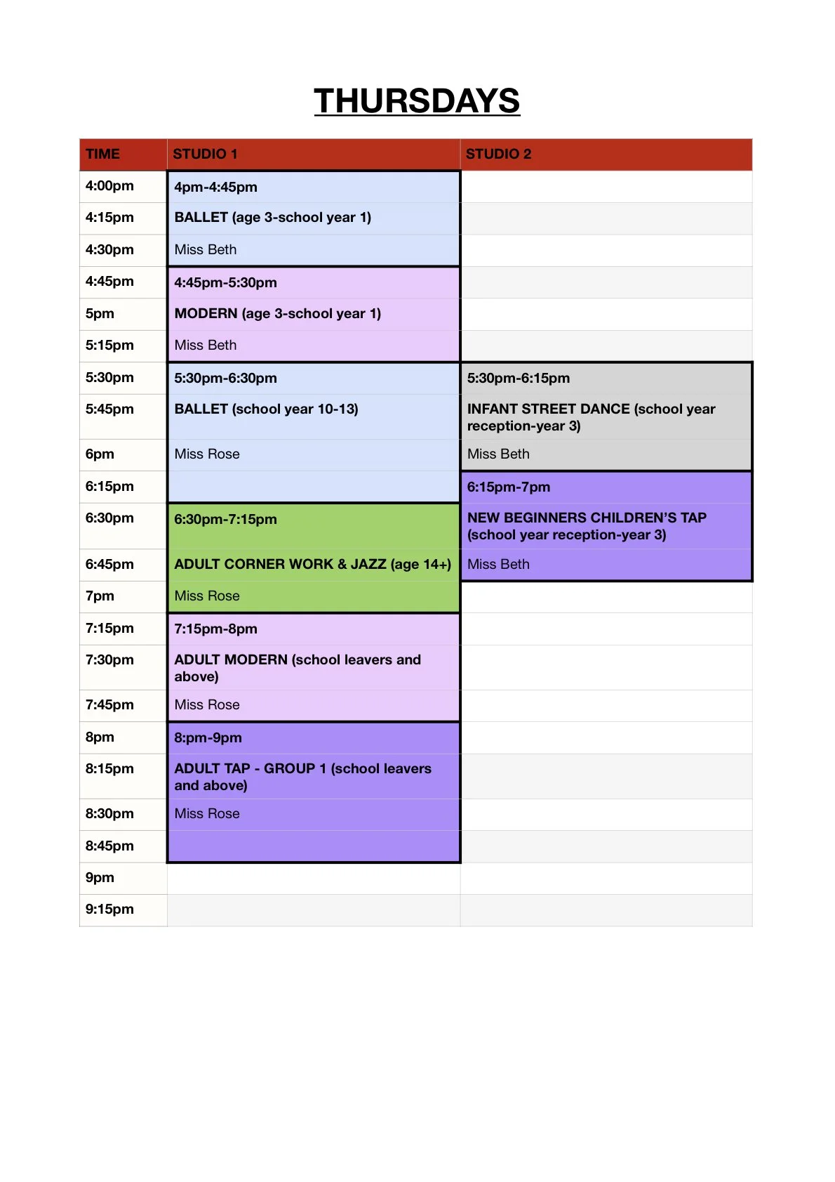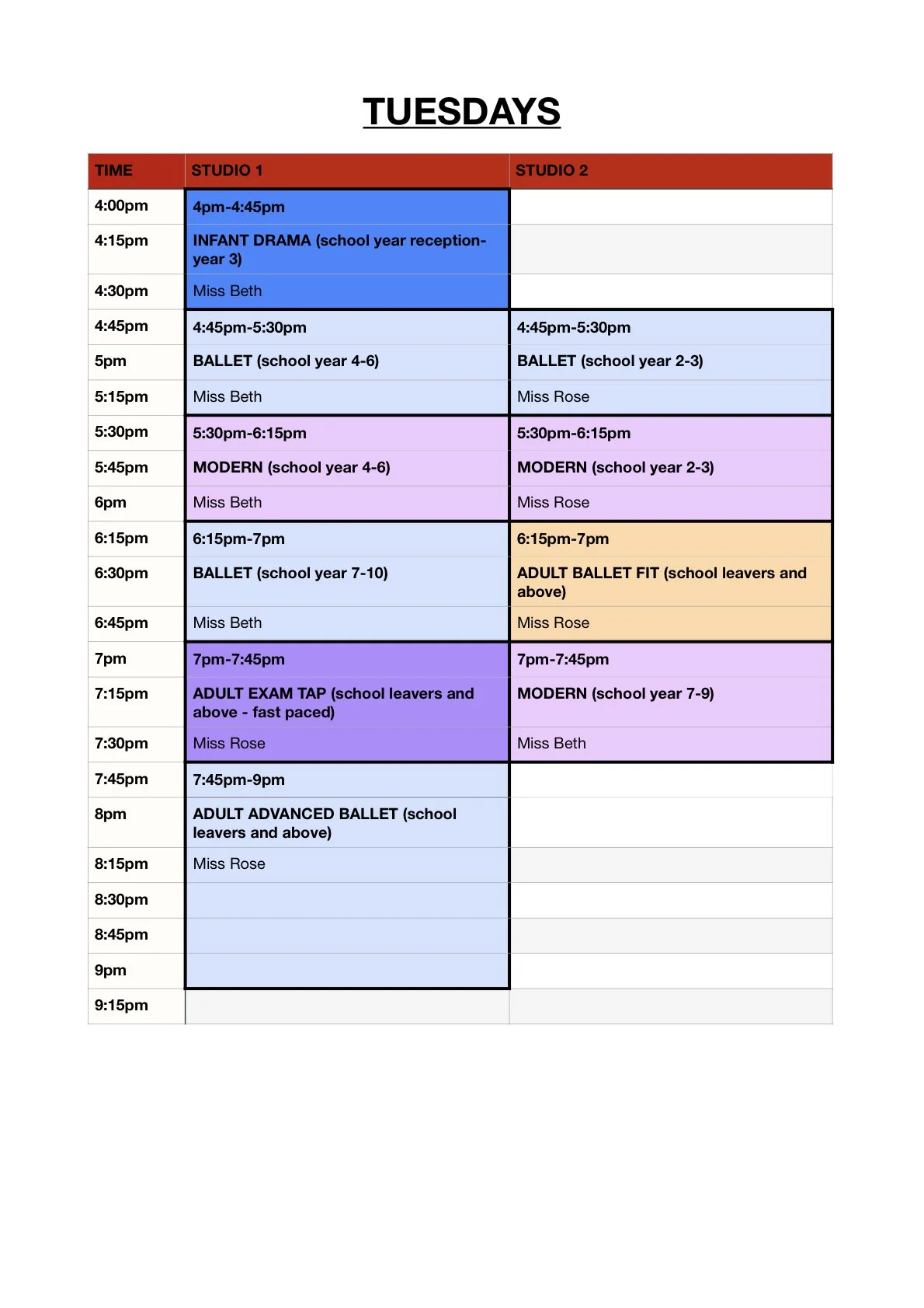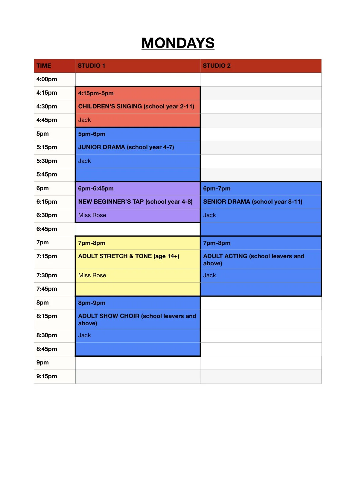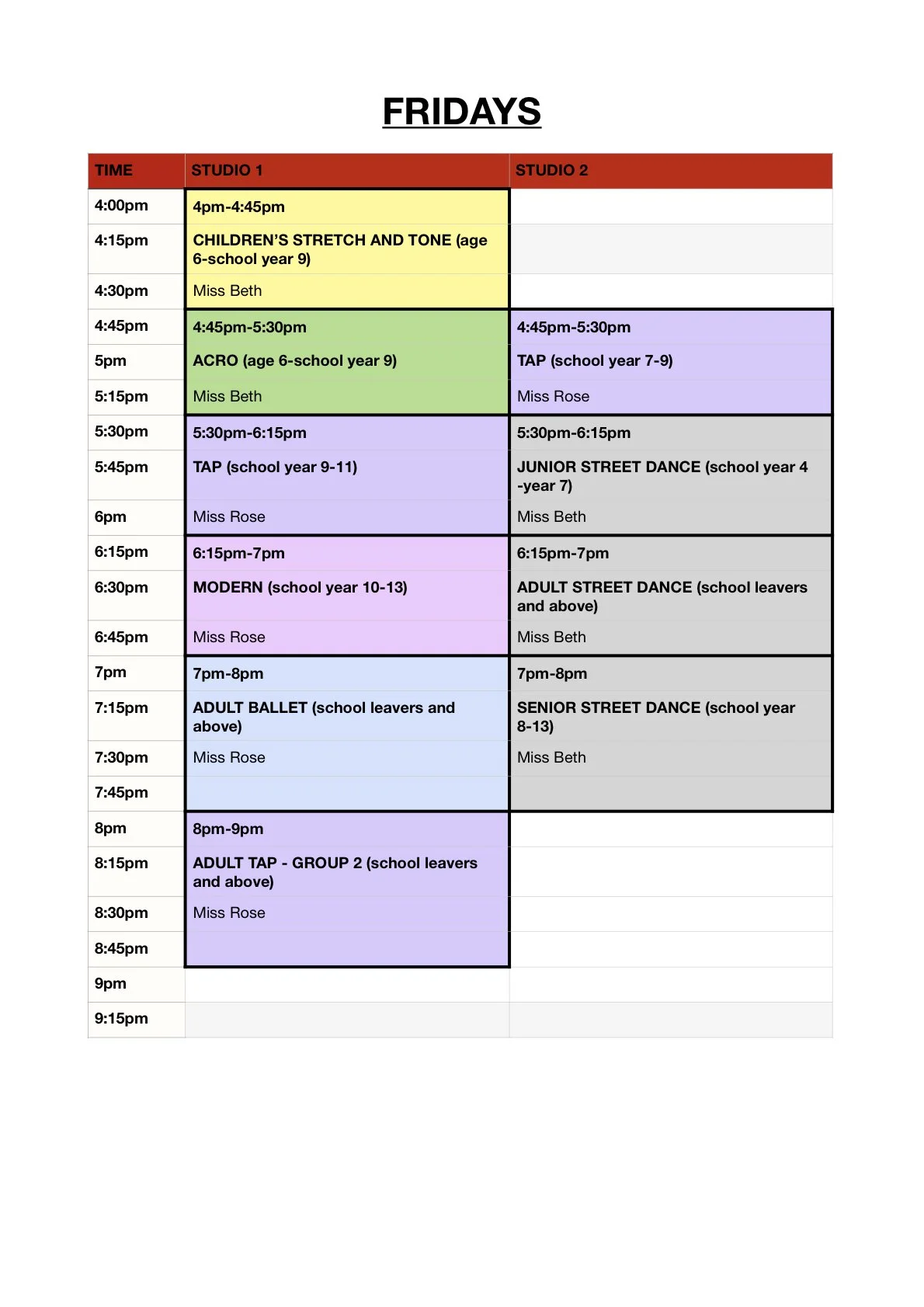 Please note that our timetable is often changing TO SUIT THE PROGRESSION OF OUR CLASSES. this may not be the current version of our timetable. please contact us via the contact page for our latest version.